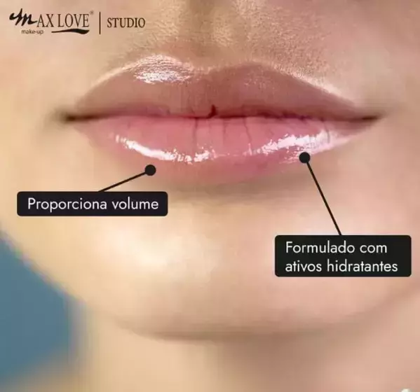 Gloss labial Lip Volumoso Max Love promove cor e brilho enquanto aumenta o volume dos lábios.